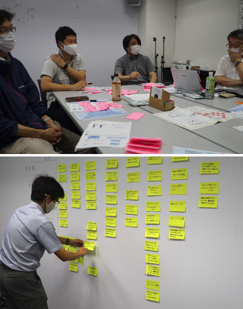 「フォトニクス生命工学研究開発拠点」では、一度決めた拠点ビジョンや研究ターゲットに固執することなく、地域や関係者の考えをより多く取り入れ、目標とする社会像を洗練させ、研究ターゲット、開発課題に反映させます。そうすることにより、研究成果の実用化やそれによる社会貢献の姿を明確でき、またそれを参加メンバーで共有することで、未来社会に貢献する拠点として成長していけると考えています。今年度はデザイン思考を取り入れた3回のワークショップを開催する予定です。8月7日の第1回目のワークショップでは、参加者が自由にアイデアを出し合い、多様な社会像を描きました。第2回、第3回のワークショップでは、これらの社会像をより洗練させ、それをバックキャストすることにより、研究拠点の活動内容に反映させていく予定です。