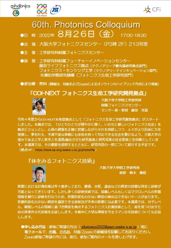 2022年8月26日(金)に、第60回フォトニクス・コロキアムが開催されます。