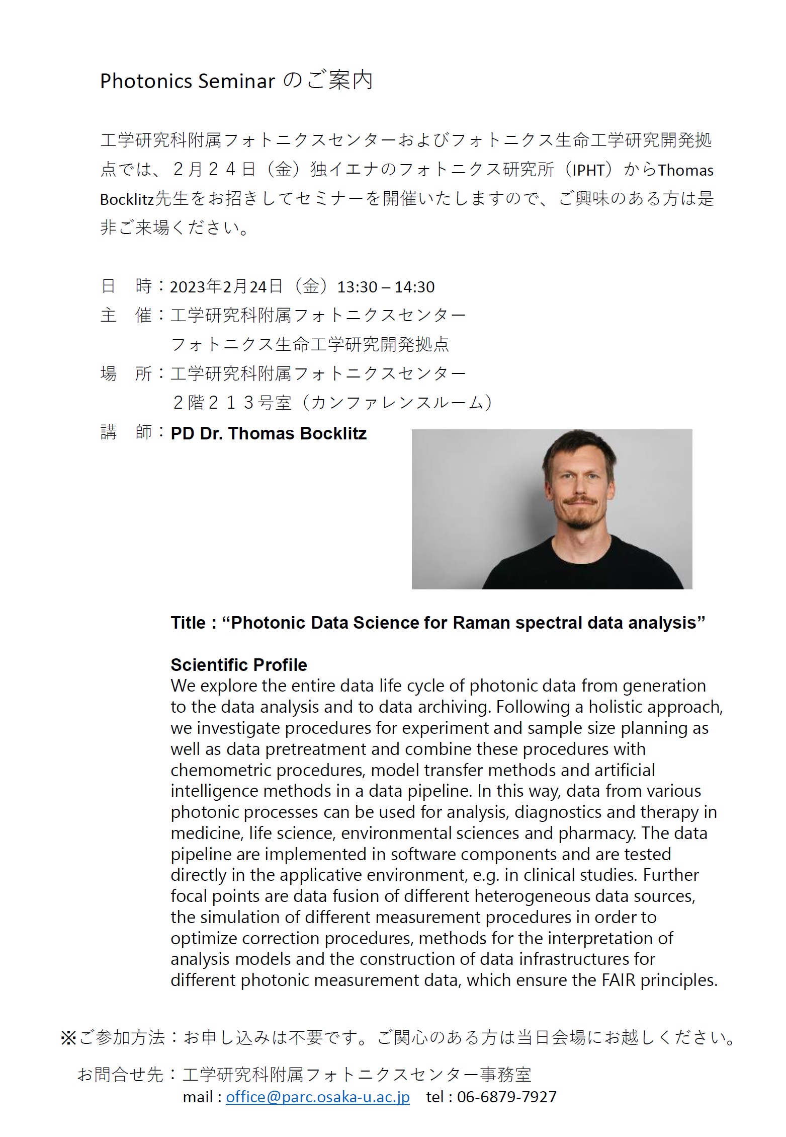 (IPHT)からThomas Bocklitz先生をお招きしてセミナーを開催いたします。