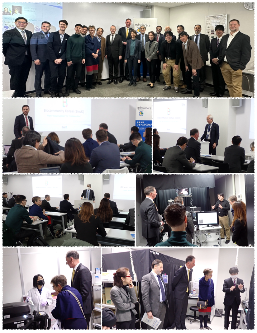 2024年2月29日(木)、在関西(総)領事館有志による科学技術に関する親睦団体 Science & Technology Diplomatic Circle Kansai (S&TDC Kansai) の御一行様18名が来訪され、見学をされました。まずはじめに、イタリア総領事マルコ・プレンチペ様が代表され、ご挨拶とS&TDC Kansaiのご紹介をされた後、バイオコミュニティー関西(BiocK)副委員長兼統括コーディネーターの坂田恒昭大阪大学共創機構特任教授よりBiocKの活動についてご説明がありました。続いて、産業技術総合研究所 生命工学領域OILラボ長の民谷栄一阪大名誉教授よりAIST-OILのご紹介がありました。また、井上康志教授から阪大フォトニクスセンターの紹介と活動の説明があった後、藤田聡史産総研OIL副ラボ長よりCOI-NEXTについて説明がありました。その後、2班に分かれてセンターの見学が行われ、最先端ラマン散乱顕微鏡、DNAシークエンサ、臓器チップなどの最新の研究成果と共用装置をご覧になられました。最後に、オランダ総領事 マーク・カウパース様よりご挨拶がありました。ご見学全体を通じて、質疑応答が活発に行われるなど、領事の皆様の本センターにおける成果と実社会への実装の取り組みについての関心の高さを伺うことができました。