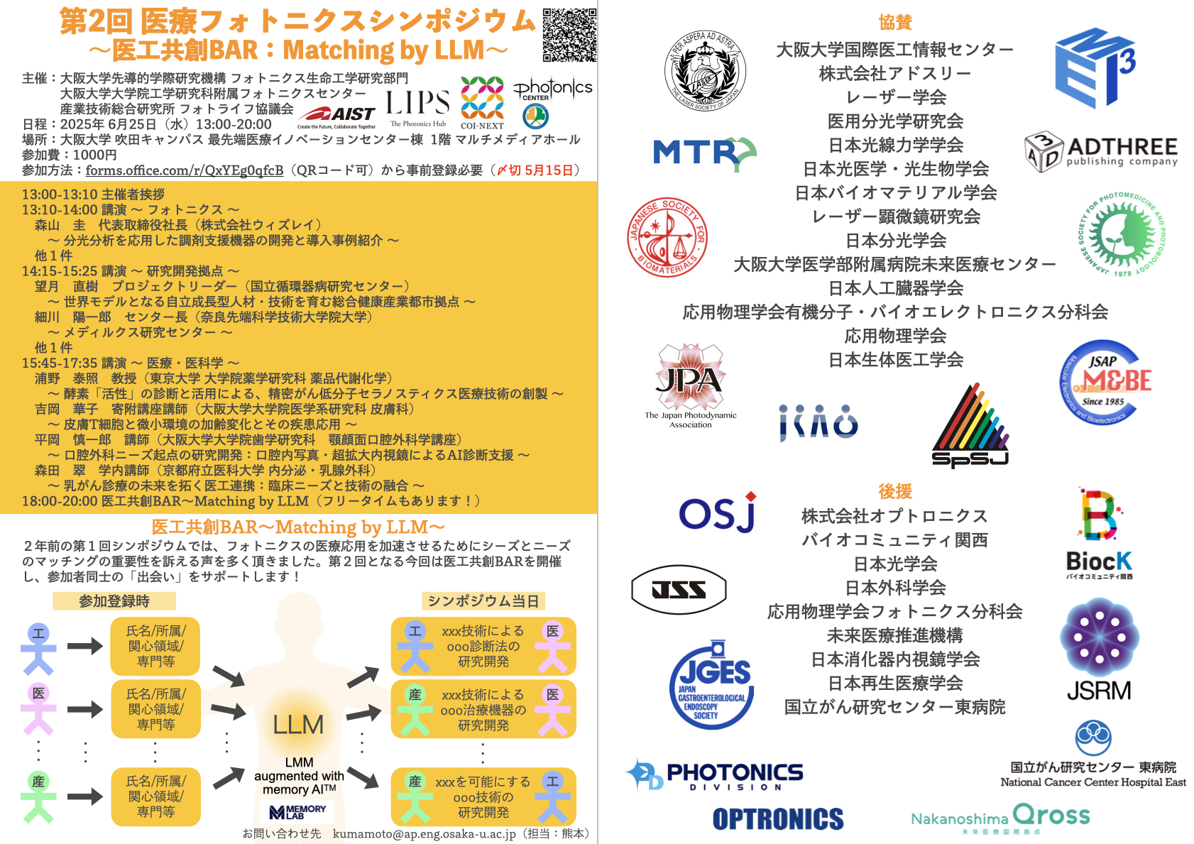 第2回医療フォトニクスシンポジウム〜医工共創BAR:Matching by LLM〜を開催します(参加登録〆切:2025年5月15日)