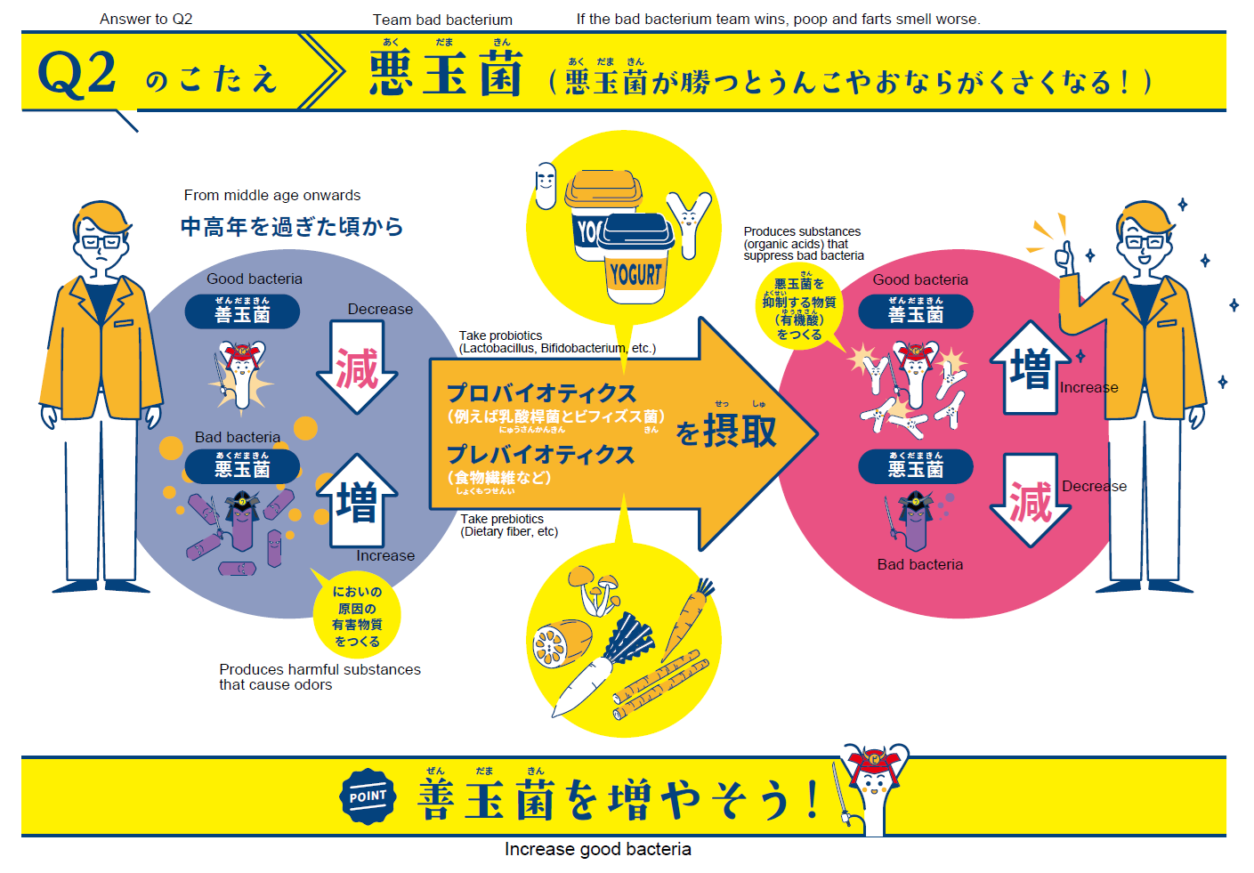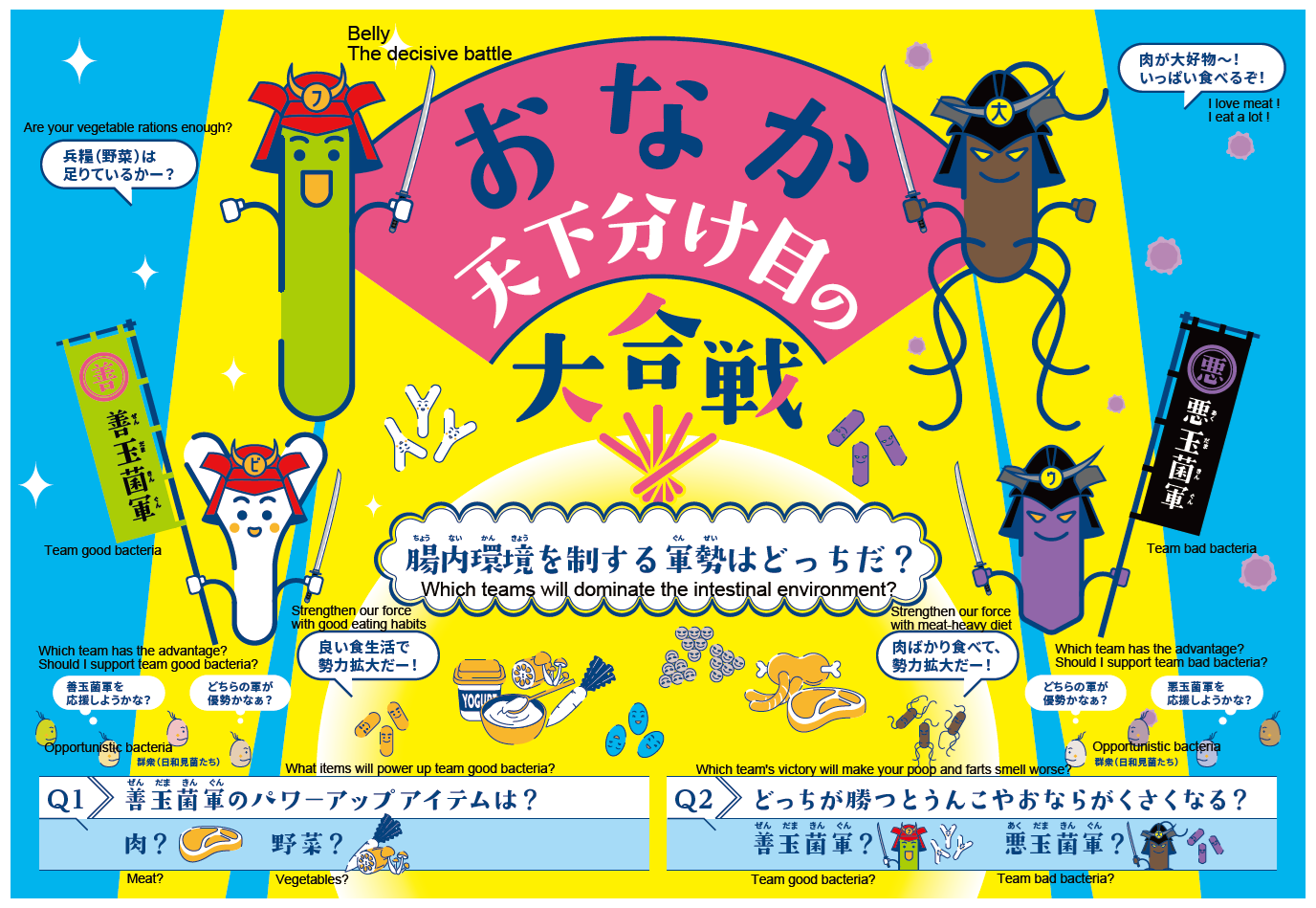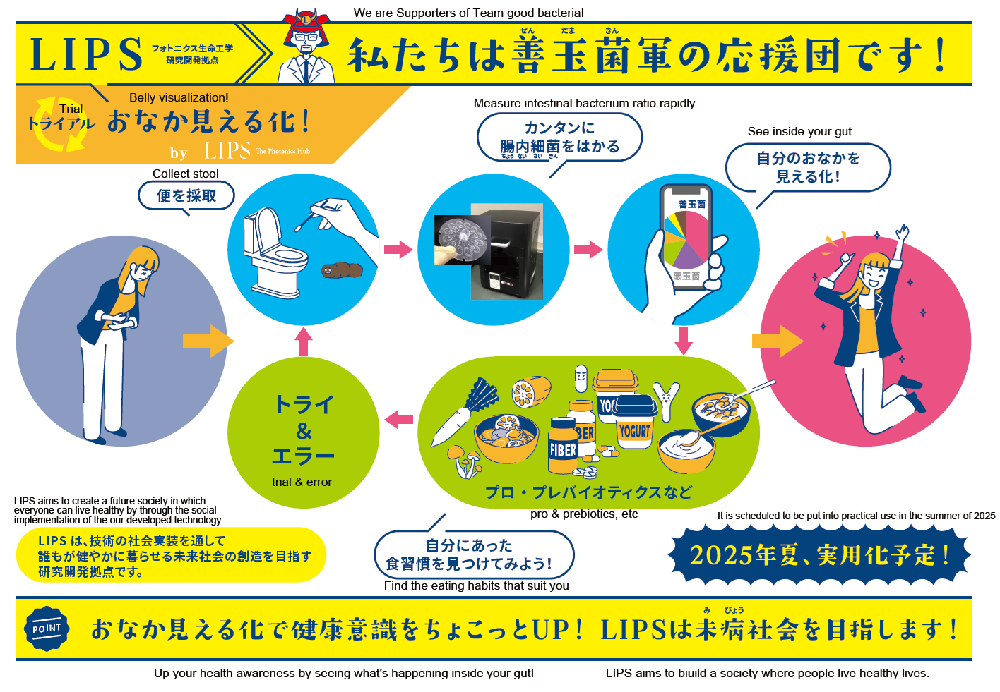 健康の維持・向上は、医療費や介護負担の増加といった社会課題を解決していくうえで重要です。展示を通じて腸内環境とおなかの関係を知り、食生活など、自身の健康意識を高めるきっかけになればと思います。ぜひ、この機会に健康維持・向上について一緒に考えてみましょう。