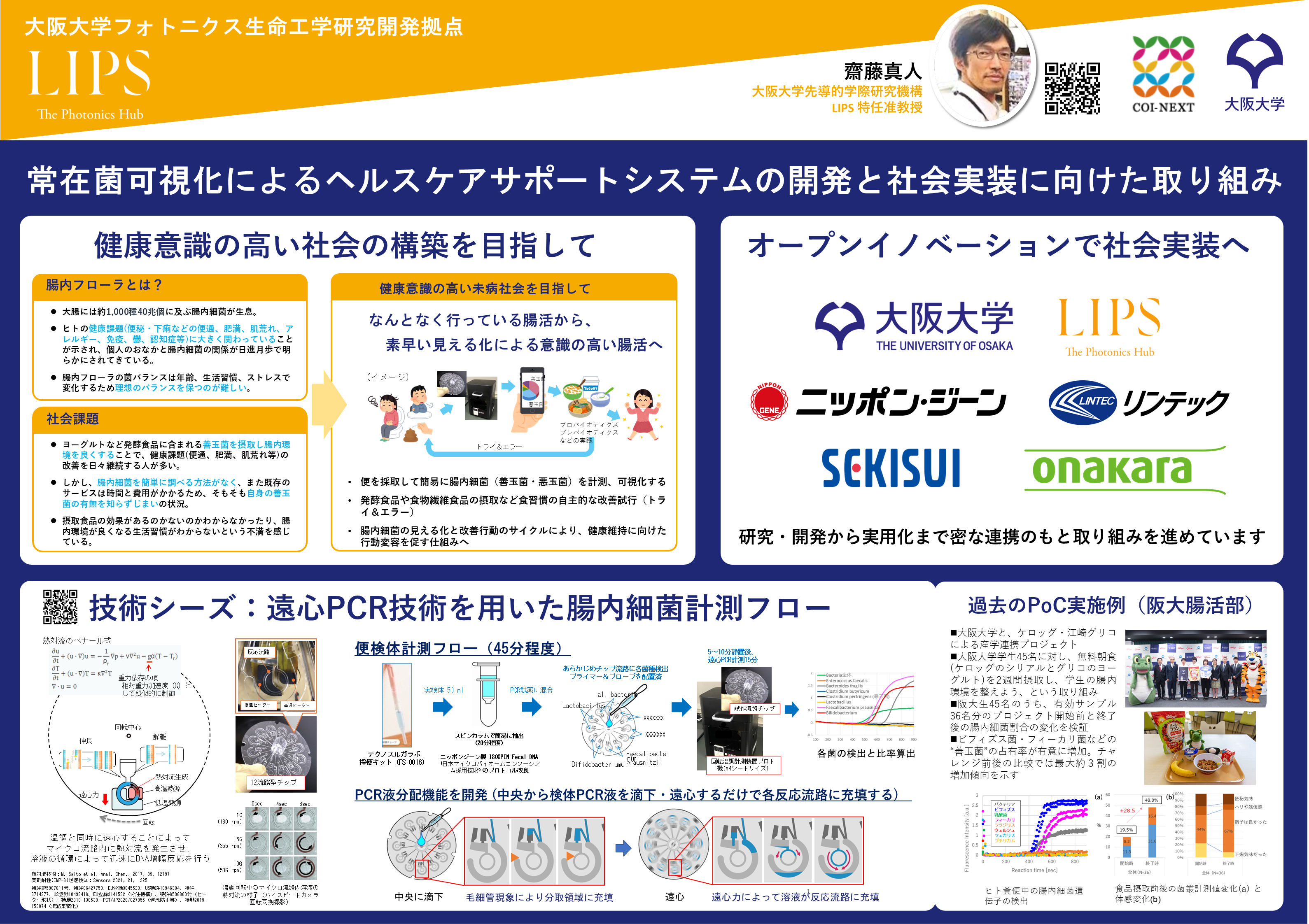 本研究ではDNA増幅法「PCR」の高速化技術を開発し、これを応用して腸内細菌を簡便に測定する方法を実現しました。さて、自分の腸内細菌はどうでしょうか?食生活はどうでしょうか?この機会に自分のおなかと健康に向けたアクションを考えてみよう。